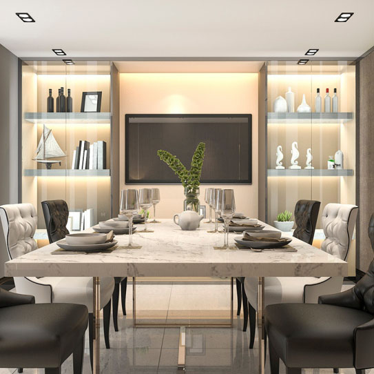 Dinning is an area in the house where you can find some nice and cozy vibe to eat well. The dining room has a very beautiful and relieving appearance. You can fill your dining room with high-quality furniture beautifully designed and built according to your style and taste. In the Dining room, You can have all the new and modern trend-based Dining tables, chairs, and more furniture.